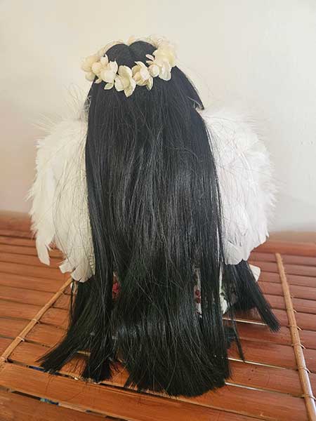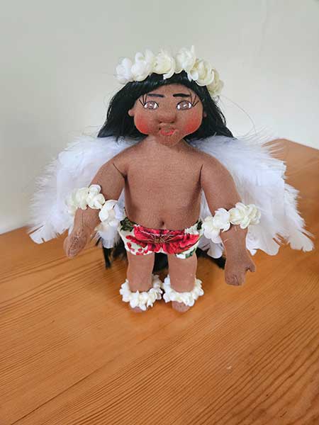 Doll care: Gently brush the dolls and their clothing with a soft dry toothbrush to remove dust. Always brush the faces and bodies upwards towards the hair. You may gently finger comb her hair. Pua Kalikimaka is a one of a kind Hawaiian Art Doll. She is a collector’s item bringing you the spiritual power of Hawaii. Every bit of Pua Kalikimaka has been lovingly handcrafted to create a new friend who will last a lifetime. |